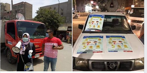 وقد نقلت سيارات محافظة الجيزة رسائل التوعية للمواطنين والتي تضمنت نشر الوعي عن الفيروس وطرق انتقاله وكيفية الوقاية منه واهمية النظافة الشخصية وغسل اليدين والحفاظ علي التباعد الاجتماعي والحد من اي تجمعات وأهمية ارتداء الكمامات في الاماكن العامة واماكن العمل ووسائل النقل والمنشأت الخدمية وذلك لتقليل فرص الإصابة بفيروس كورونا من خلال مكبرات صوت تم وضعها بالسيارات تردد تلك الرسائل اثناء مرورها بالشوارع .