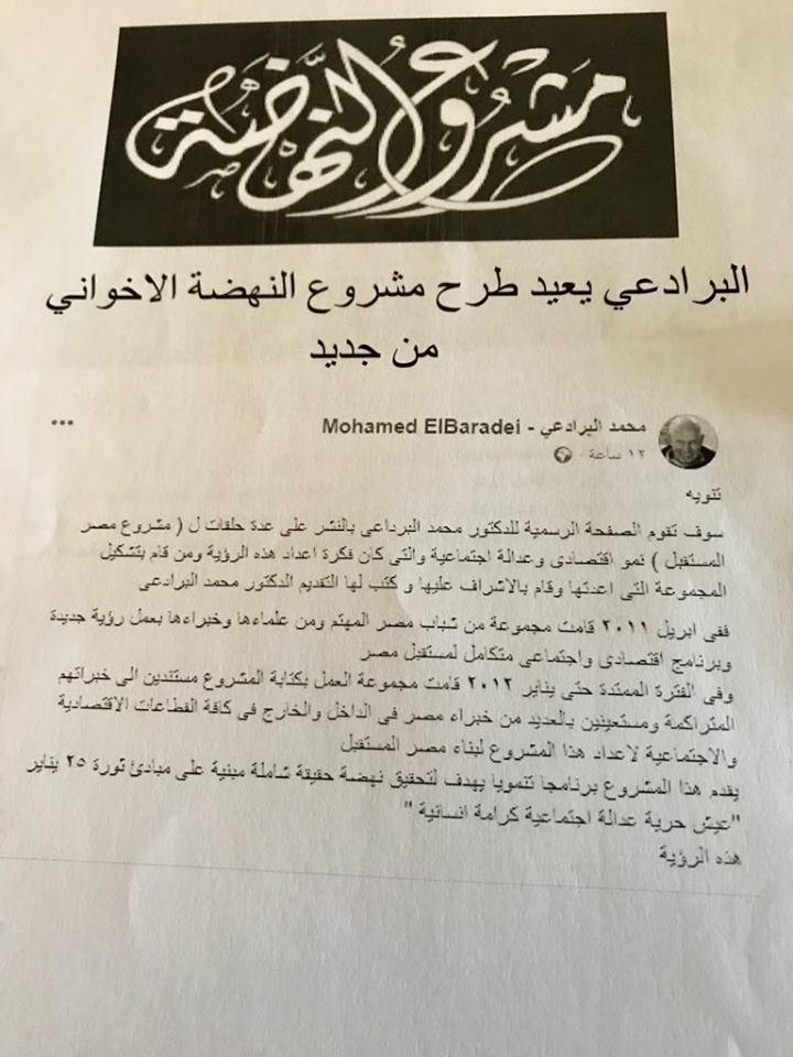 كشفت جبهةشباب الصحفيين عن قيام أعضاء التنظيم الدولي لجماعة الإخوان الإرهابية والأمريكان بتكليف د، محمد البرادعي بالسعي والتمهيد لإجراء عملية تصالح بين الإخوان والدولة من خلال عدة محاور منها إعادة طرح مشروع النهضة الإخواني من جديد والاستعانة ببعض العناصر داخل مصر وخارجها للمطالبة بقتح صفحة جديدة بهدف إتمام عملية الصلح وتم رصد ميزانية مالية مفتوحة قال هيثم طوالة رئيس الجبهة في تصريحات صحفية اليوم ان البرادعي عاد بعد غياب ليصدعنا بشعاراتة الرنانة من خلال التويتات المشهور بها حيث طالب بالتوافق الوطني بين كافة فصائل المجتمع وتصفية الخلافات والاتفاق على بناء ديمقراطي، فهل لايعلم البرادعي الذي يرى ويسمع دائما بعيون جماعة الإخوان الإرهابية كم الدماء التي سالت في شوارع مصر وكان أبطالها جماعة الدم والخراب، وهل نسي وتناسي البرادعي شهداء الواجب الذين ضحوا بحياتهم نتيجة للعمليات الإرهابية التي خطط لها ونفذها أعضاء جماعة الإخوان الإرهابية، وهل يرتدي البرادعي نظارة سوداء تحجب عنة مشاهدة الجرائم اليومية من حرق وقتل وتفجيرات في مختلف محافظات مصر من خلال سيناريو وحوار ولاد الإرهابية، لا يابرادعي لن نتصالح على دماء الشهداء الطاهرة ودعوتك مرفوضة ولا مكان لها بين المصريين الشرفاء العاشقين لتراب مصر الذين لم يهربوا وظلوا في بلدهم، أضاف طوالة :مهما كتبت تويتات وصرخت بأعلى صوت عن إعادة طرح مايسمى حسب وصفك مشروع النهضة الإخواني الكاذب الوهمي لن ننخدع في جماعة تتاجر بالدين لتحقيق مصالحها الشخصية بعيدا تماما عن مصلحة مصر العليا ولن نتركهم يعودوا للمشهد من جديد فهم خونة وعملاء دمروا وحرقوا وقتلوا ومكانهم الطبيعي في قطر وتركيا وليس في مصر،