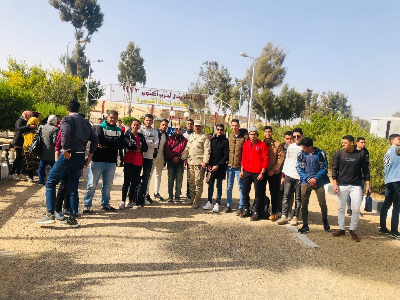 وبدأت الزيارة بعبور الطلبة على المعدية 6 بقناة السويس القديمة ثم معدية قناة السويس الجديدة وشرق القناة، ثم التوجه إلى الأثر التاريخي لحرب أكتوبر 73 ثم التوجه لمزار موقع تبة الشجرة السياحي..