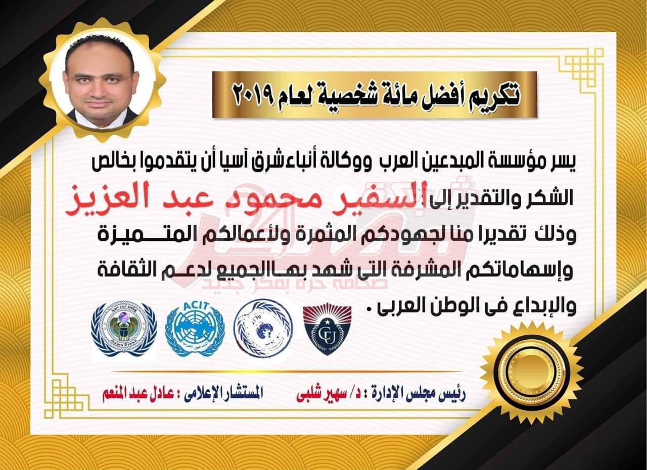 تكريم محمود عبد العزيز كأفضل مائة شخصية لعام 2019...