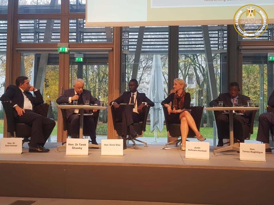 في ضوء زيارة السيد الرئيس عبد الفتاح السيسي، لجمهورية ألمانيا الاتحادية للمشاركة في اجتماعات مجموعة العشرين وإفريقيا، وتعزيز سبل التعاون بين مصر وألمانيا، شارك الدكتور طارق شوقي، وزير التربية والتعليم، في فعاليات هذا الحدث من خلال تقديم عرض حول مستقبل التعليم الفني في مصر بالمنتدى الألماني الإفريقي للتعليم والتدريب الفني والمهني (تشكيل مستقبل العمالة).