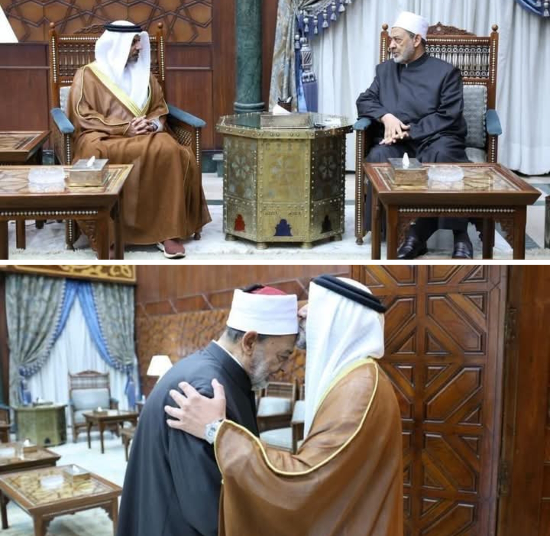 وفي بداية اللقاء، أكَّد فضيلة الإمام الأكبر عمق العلاقات التي تربط الأزهر بدولة الإمارات العربيَّة المتَّحدة وقيادتها الرشيدة وشعبها الشقيق، مؤكدًا اعتزازَه بالعلاقة التي تربطه بأخيه صاحب السمو الشيخ محمد بن زايد آل نهيان، رئيس الدولة، الَّذي لم يدخر جهدًا في دعم رسالة الأزهر الشريف، وقد أسهمت جهودُه مع الأزهر في إطلاق العديد من المشروعات والمبادرات الإنسانية والثقافية العالمية، مشيدًا فضيلته بنهج دولة الإمارات في تعزيز قيم الأخوة وثقافة التعايش الإيجابي، ودعمها الإغاثي والإنساني للشعب الفلسطيني المظلوم؛ لتكون امتدادًا لنهج الوالد المؤسس لدولة الإمارات، و حكيم العرب الراحل الشيخ زايد، رحمه الله وطيب ثراه.