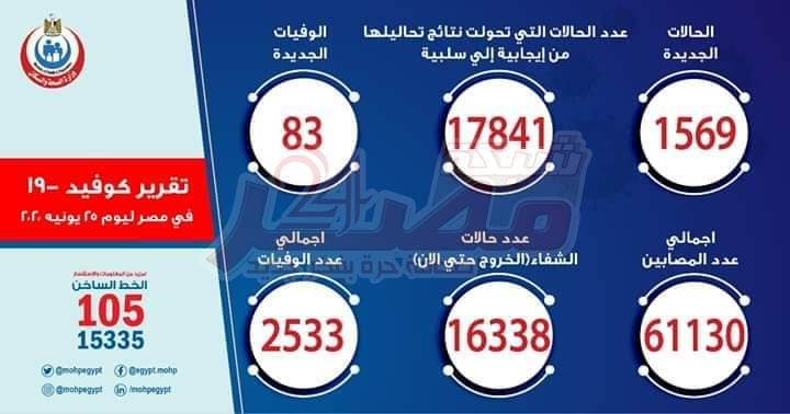 الصحة: تسجيل 1569 حالة إيجابية جديدة لفيروس...