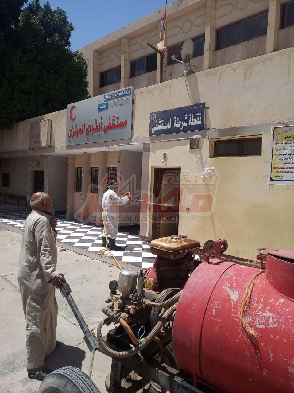 الصحة:تقوم بتعقيم وتطهير مبني مستشفى أبشواى...