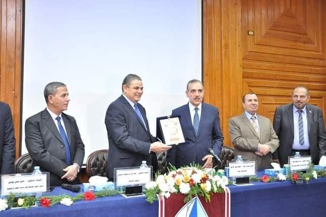 وأهدى دسوقي درع الجامعة لمحافظ كفر الشيخ كما أهدى المحافظ درع المحافظة لرئيس الجامعة .
