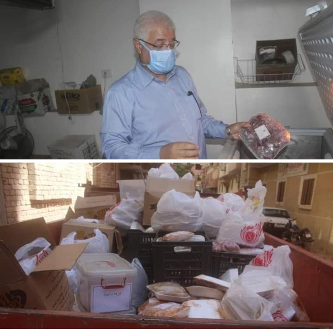 واثناء المتابعة تلاحظ وجود چراچ محول لمخزن لاحد المطاعم الكبير بمدينة بني سويف به حوالي ١.٥ طن مواد غذائية فاسدة تم اخذ عينات منها بواسطة مفتش الاغذية والتموين والطب البيطرى لفحصها عبارة عن 292كيلو فراخ مجمده و22 كيلو بانية و110كيلو لحمه مجمدة و48كيلو دهن و36كيلو مفروم و4كيلو لحمة راس و12كيلو كبدة