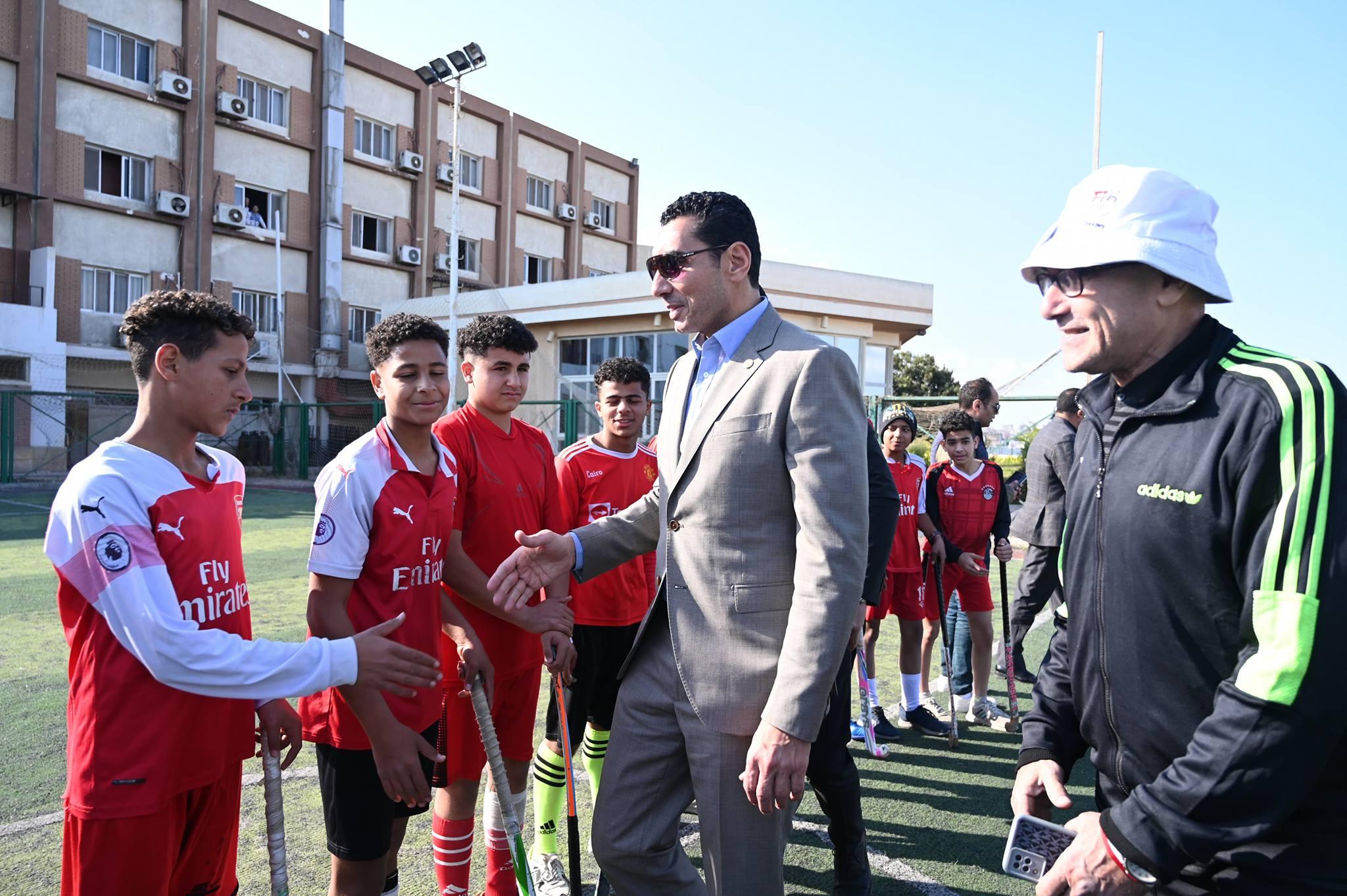 وعلي هامش الزيارة، التقي الوزير بالمشاركين في خماسيات رمضان لرواد هوكي مصر المُقامة ببيت شباب الإسماعيلية.