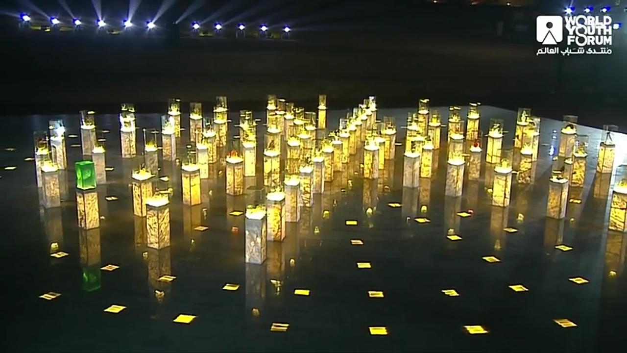 ونوه الرئيس السيسي إلى أن الشباب الحالي يسير بخطى واثقة على مبادئ الحضارة الإنسانية، حيث تتلاقى فيها أحلامهم ويتبادلون الرؤى فيما يواجهه العالم من تحديات.