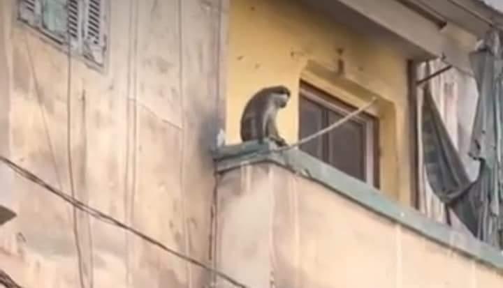 فجأة وجد قرد يتحول بين أسطح البيوت في منطقة وادي_القمر غرب مدينة الاسكندرية