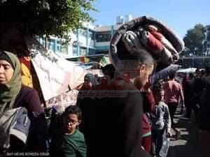 تدفق عشرات الآلاف من الفلsطينيين إلى بلدة رفح فى...
