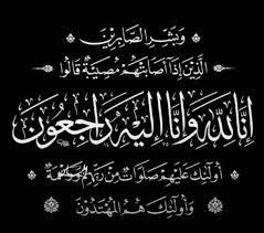 بوفاة المغفور لها بإذن الله السيدة والدته، سائلين المولى عز وجل أن يتغمد الفقيدة بواسع رحمتهه ويدخلها فسيح جناته، ويلهم أهلها وذويها الصبر والسلوان... والبقاء والدوام لله وانا لله وانا اليه راجعون