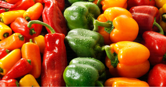 الفلفل الحلو منخفض السعرات الحرارية وغني يالعناصر الغذائية الهامة، فالفلفل مصدر ممتاز لفيتامين A و C والبوتاسيوم، وحمض الفوليك والألياف الغذائية. الفلفل الحلو يأتي في جميع الأحجام والألوان، حيث يوجد الفلفل الأخضر والبرتقالي والأصفر والأحمر، ولكن الفلفل الأحمر يحتوي على أعلى تركيز من العناصر الغذائية لأن حصاده يتم متأخرًا، حيث يتم حصاد الفلفل الأخضر في وقت سابق قبل أن تتاح له الفرصة لتحول للون الأصفر والبرتقالي، ثم الأحمر، وبالمقارنة مع الفلفل الأخضر، فإن الفلفل الأحمر يحتوي على ما يقرب من 11 مرة من البيتا كاروتين و 1.5 مرة أكثر من فيتامين سي.