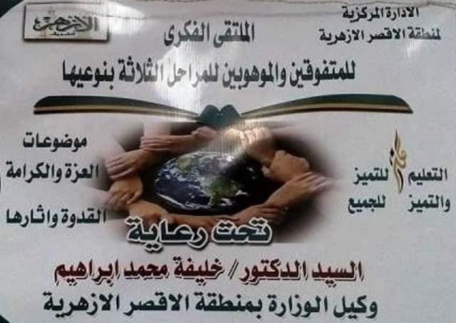 نجح طالبات منطقة الأقصر الأزهرية في الحصول على المركز الثالث على مستوى الجمهورية بمسابقة الملتقي الفكري لأوائل الطلاب الموهوبين والمتفوقين بالمناطق الأزهرية .
