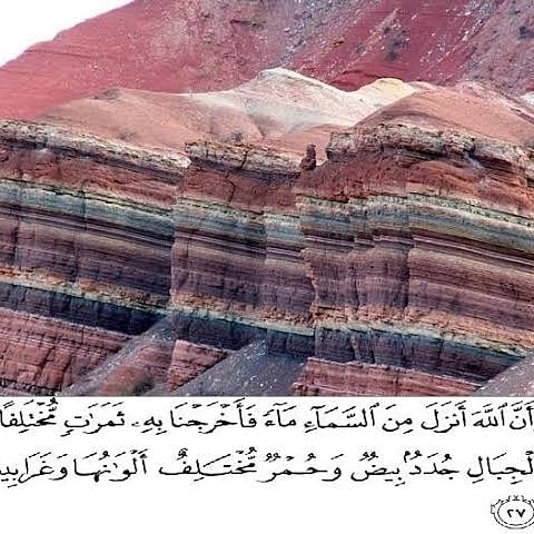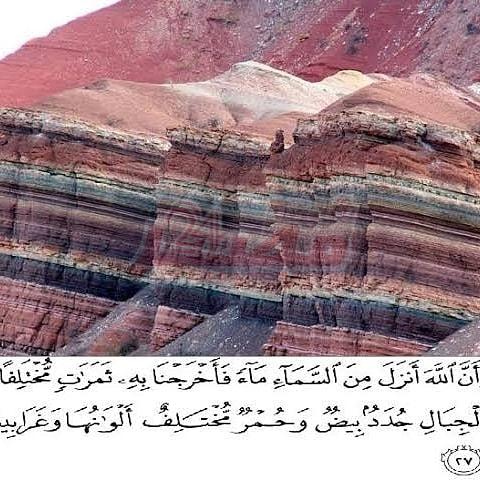 ثالثاً : يقول تعالى في الآيه 26من السورة " ألم تر أن الله أنزل من السماء ماء فأخرجنا به ثمرات مختلفاً ألوانها ومن الجبال جددبيض وحمرمختلف الوانها وغرابيب سود " تحتوي هذه الآيه القصيرة على معجزة ربانية بكل المقاييس خارج حدود العقل البشري فالجبال التى تحدثت عنها الآيه لا توجد إلا في غرب الصين فقط بأشكال وألوان غاية في الروعة من حيث التداخل والإختلاط كما هو مذكور بالضبط في الآيه .