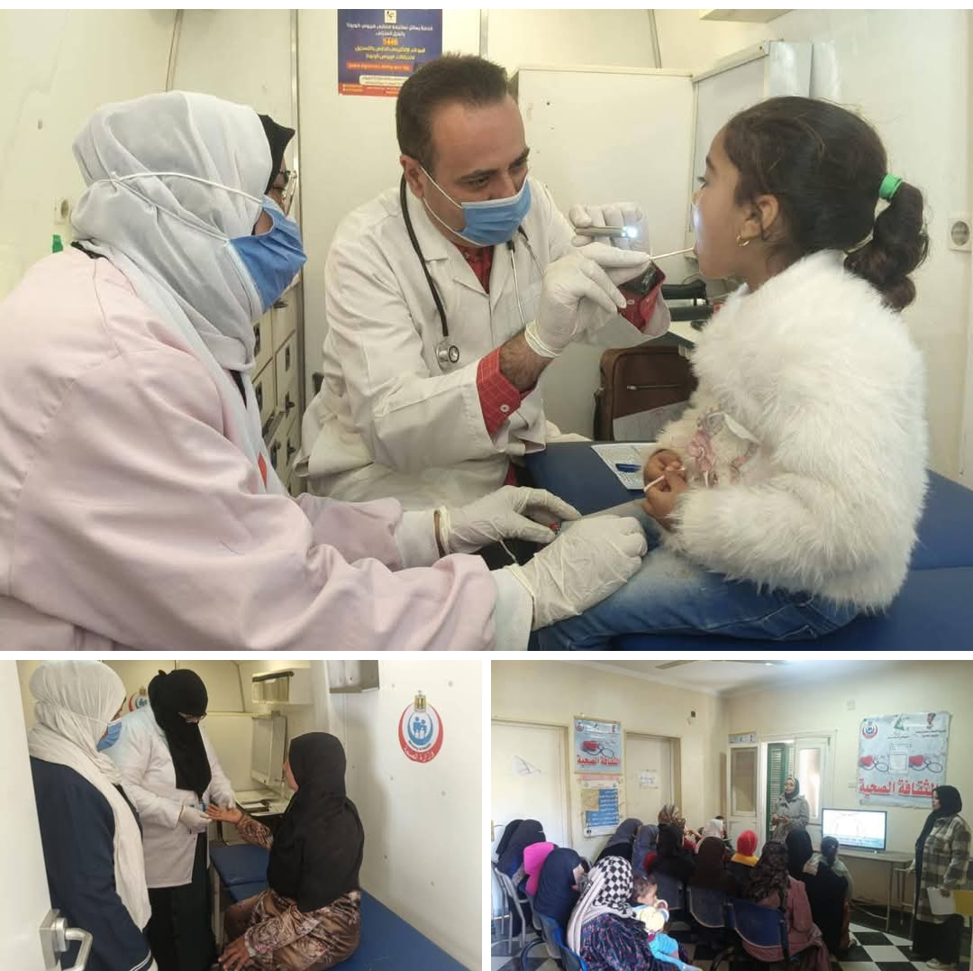 ومن جانبها، أوضحت الدكتورة وفاء عادل، مسؤول القوافل الطبية بالمديرية، أن القافلة شملت أيضًا إجراء 82 تحليل دم و42 عينة أخرى، وتنفيذ 63 حالة موجات صوتية و15 حالة أشعة سينية، إلى جانب فحص الكشف المبكر للضغط والسكر لعدد 118 مواطنًا، وعقد 7 ندوات تثقيف صحي حضرها 108 مواطنين، مع تحويل 9 حالات إلى المستشفيات لاستكمال العلاج اللازم.