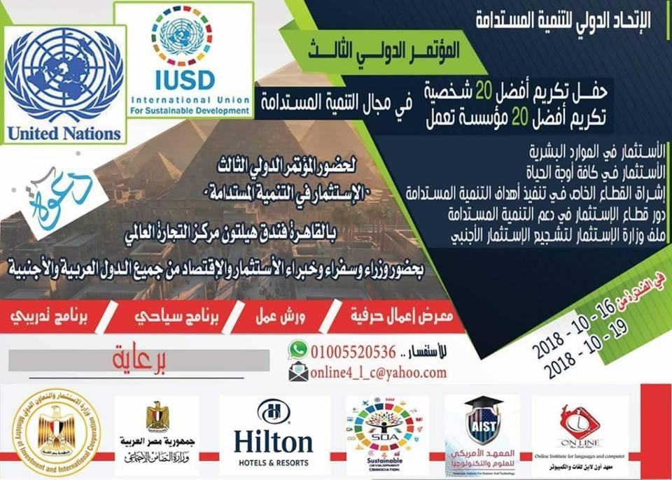 ينظم الإتحاد الدولى للتنمية المستدامة IUSD التابع لبرنامج التنمية المستدامة بالأمم المتحدة المؤتمر الدولى الثالث بعنوان
