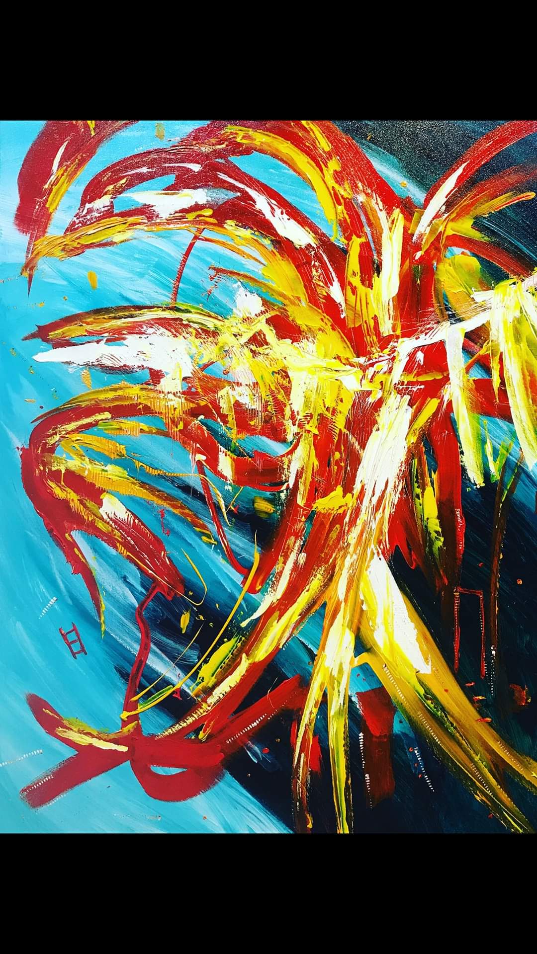 فهى تهمس وتتوقد وتبوح بلا تصريح فيها من روح الحياة نضارتها وانطفاءها وفيها من تجريد حيوية اللمسة وتدفقها بلا انتهاء تعلن فى اناقة تشكيلية عن هذا الفيض من التفاؤل والإشراق .