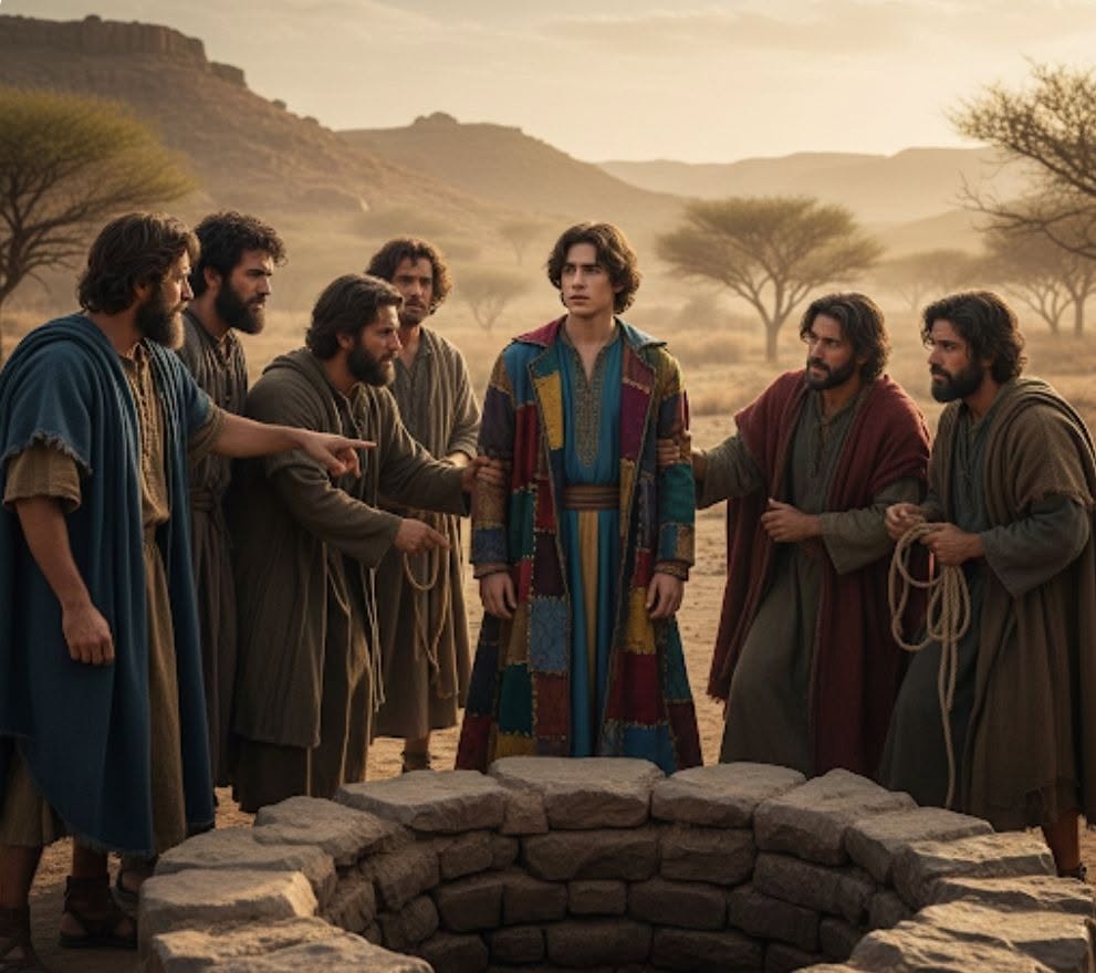 مما جعلهم يدبرون له المكيده ويرمونه ف البير، بعد تنمرهم عليه، ولكن تحنن قلب راوبين علي يوسف وبعد ذالك وفكروا أن يبيعوه .