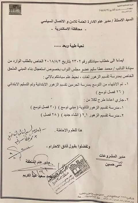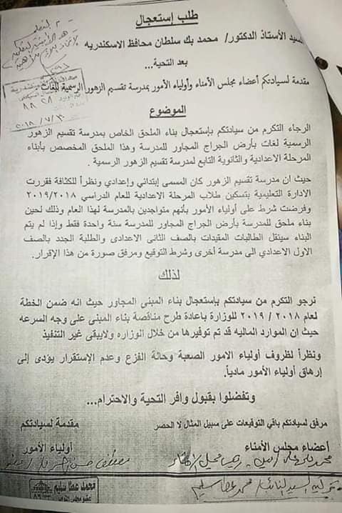 تم تقديم استعجال الي معالي محافظ الاسكندريه السابق والسابق له