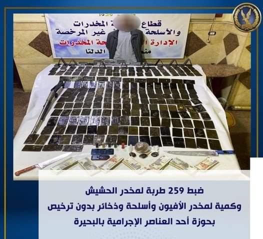 عقب تقنين الإجراءات بالتنسيق مع قطاع الأمن المركزى ومديرية أمن البحيرة وبالإشتراك مع الإدارة العامة لتدريب كلاب الأمن والحراسة بأكاديمية الشرطة تم إستهدافهما وأمكن ضبط أحدهما حال إستقلاله سيارة بدائرة القسم.. وبحوزته (259 طربة لمخدر الحشيش وزنت 600,28 كيلو جرام – كمية لمخدر الأفيون وزنت 500,1كيلو جرام – بندقية خرطوش وعدد من الطلقات لذات العيار - عدد 2 سلاح أبيض - مبالغ مالية – هاتفى محمول).. وبمواجهته بالمضبوطات أقر بقيامه بالإتجار بالمواد المخدرة بمشاركة المتهم الآخر "جارى ضبطه" والمبلغ المالى من متحصلات نشاطه الإجرامى والهاتف المحمول للإتصال بعملائه والسلاح النارى بقصد الدفاع عن نشاطه الإجرامى.