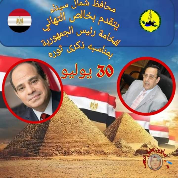 بعث الدكتور محمد عبد الفضيل شوشة، محافظ شمال سيناء برقية تهنئة للسيد الرئيس عبد الفتاح السيسي رئيس الجمهورية، بمناسبة الذكرى السابعة لثورة 30 يونيو المجيدة.