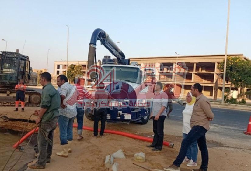 جهاز القاهرة الجديدة يصلح كسرا بخطي مياه النجار