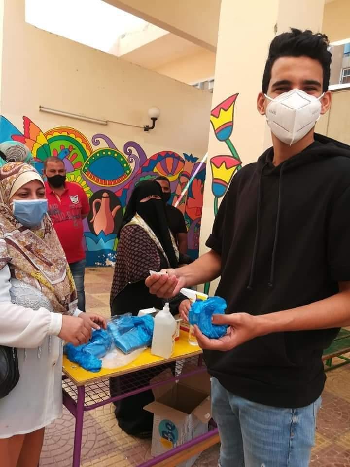 والتقاط صور حيه اثناء دخول الطلبه والطالبات الى اللجان وكيفية الالتزام بتباعد المسافات والالتزام بالكشف عليهم ومرورهم على بوابات التعقيم وارتداء الكمامات وتعقيم الايدى بالمطهرات وارتداء ماسك الوجه وتوزيع زجاجه مياه على كل طالب وطالبه