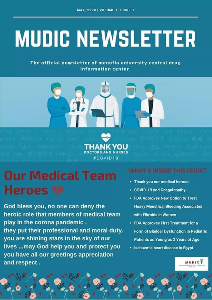 قام مركز المعلومات الدوائية الرئيسي بجامعة المنوفية بإصدار النشرة الدورية الثالثة للمركز الذي يقدم المعلومات الطبية المتخصصة لجميع الفرق الطبية بالجامعة من خلال دورية تصدر كل 3اشهر وذلك من أجل التوعية ببعض الأمراض المنتشرة وأساليب الوقاية منها.
