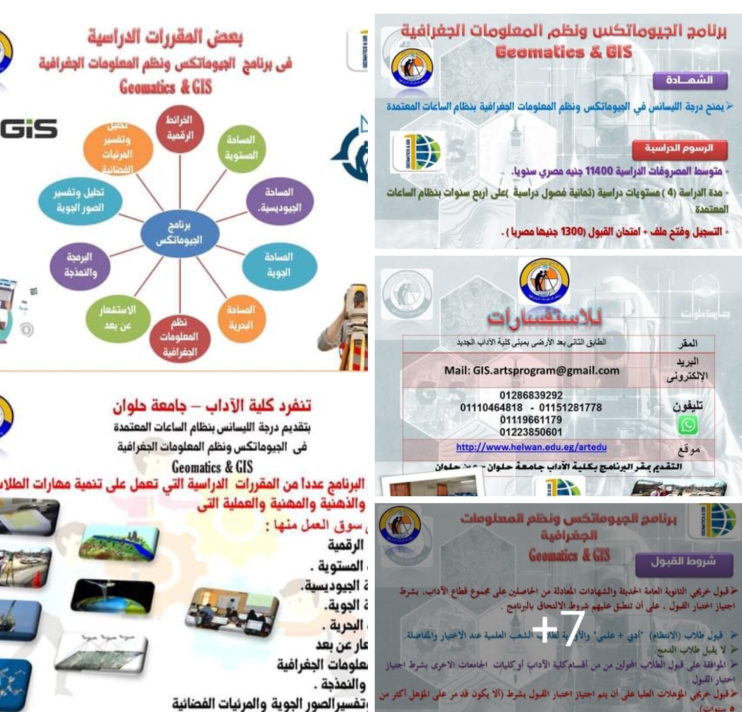 طرحت كلية الآداب بجامعة حلوان برنامج "الجيوماتكس ونظم المعلومات الجغرافية Geomatics & GIS" بنظام الساعات المعتمدة وذلك في إطار خطة الجامعة لتطوير مجالات وتخصصات التعليم الجامعي بما يتوافق مع متطلبات سوق العمل تحت رعاية الأستاذ الدكتور ماجد نجم رئيس الجامعة.
