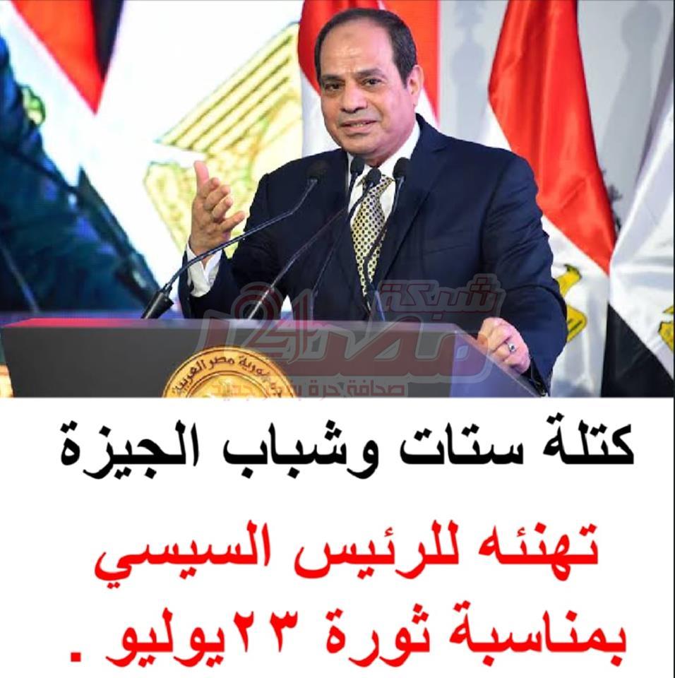 تهنئه للرئيس السيسي بمناسبة ثورة 23يوليو .