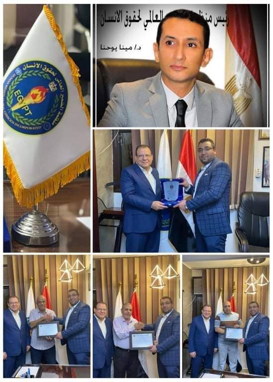 تحت رعاية الدكتور مينا يوحنا يوسف مدير عام منظمة الضمير العالمي لحقوق الإنسان قام مدير فرع منظمة الضمير العالمي لحقوق الإنسان بحلوان باهداء درع التميز لنائب رئيس اتحاد عمال مصر ورؤساء عدد من الجمعيات الخيرية الذين يعملون في الخير ومساعدة الفقراء والمحتاجين ومحدودي الدخل