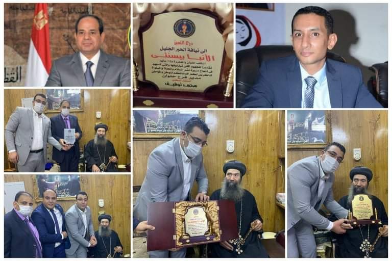 قام الدكتور مينا يوحنا يوسف مدير عام منظمة الضمير العالمي لحقوق الانسان بتوجيه الشكر والتقدير لقداسة الانبا بسنتي والاستاذ إسحاق غالي وكيل أول وزارة الثقافة نظرا لمجهودهم من أجل السلم والسلام والمحبه بين الناس ونشر التوعية الفكرية والمواطنه بين الناس من أجل ان يعيش الجميع في خير وسعاده ومحبه