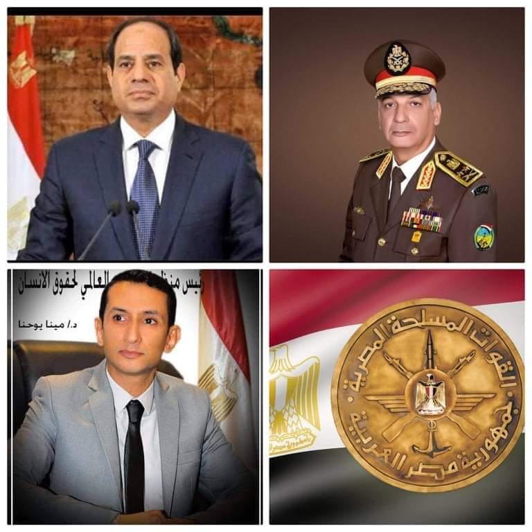 يتقدم الدكتور مينا يوحنا يوسف مدير عام منظمة الضمير العالمي لحقوق الإنسان بالتهنئة للسيد الرئيس عبدالفتاح السيسي رئيس الجمهورية القائد الأعلى للقوات المسلحة بمناسبة الاحتفال بالذكرى الـ 47 لانتصارات أكتوبر المجيدة داعياً المولى عز وجل أن يوفق الرئيس والحكومة لاستكمال بناء مصرنا الغالية وتحقيق التنمية في كافة المجالات