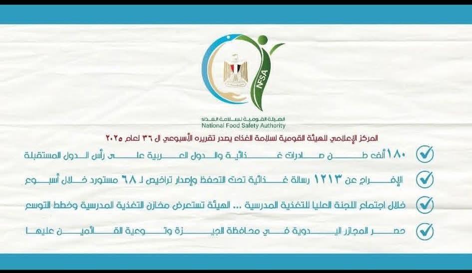 المركز الإعلامي للهيئة القومية لسلامة الغذاء يصدر...
