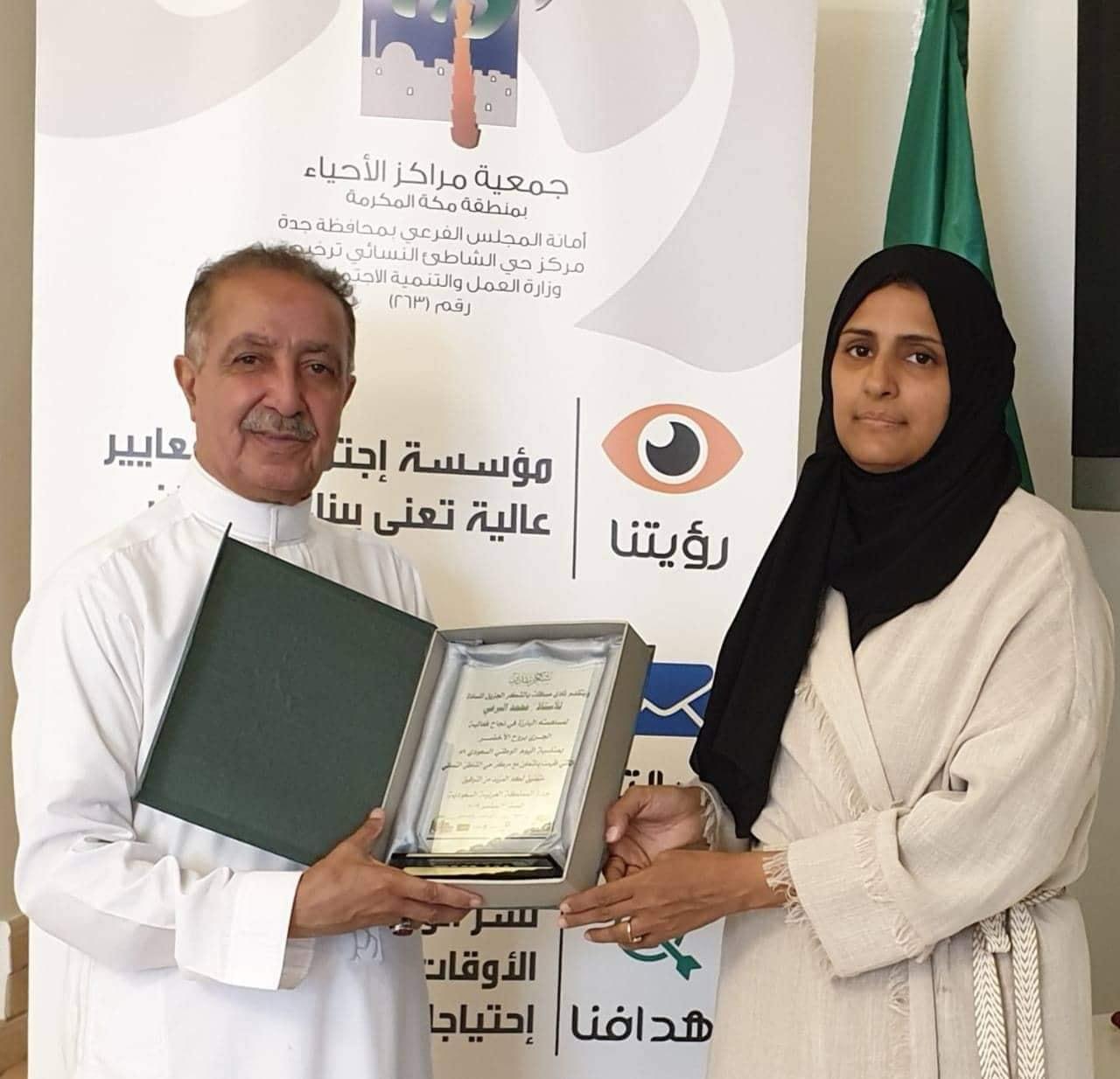 كرمت مديرة مركز حي الشاطيء النسائي بجدة الاستاذة اميرة ميمني المستشار محمد البرعي لجهوده ودوره الاعلامي في فعالية الجري بروح الاخضر في الواجهه البحرية بجدة يوم السبت 21 سبتمبر 2019م التي اقيمت بمناسبة اليوم الوطني 89 بالتعاون مع نادي مسافات.