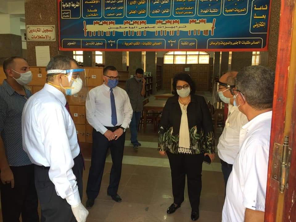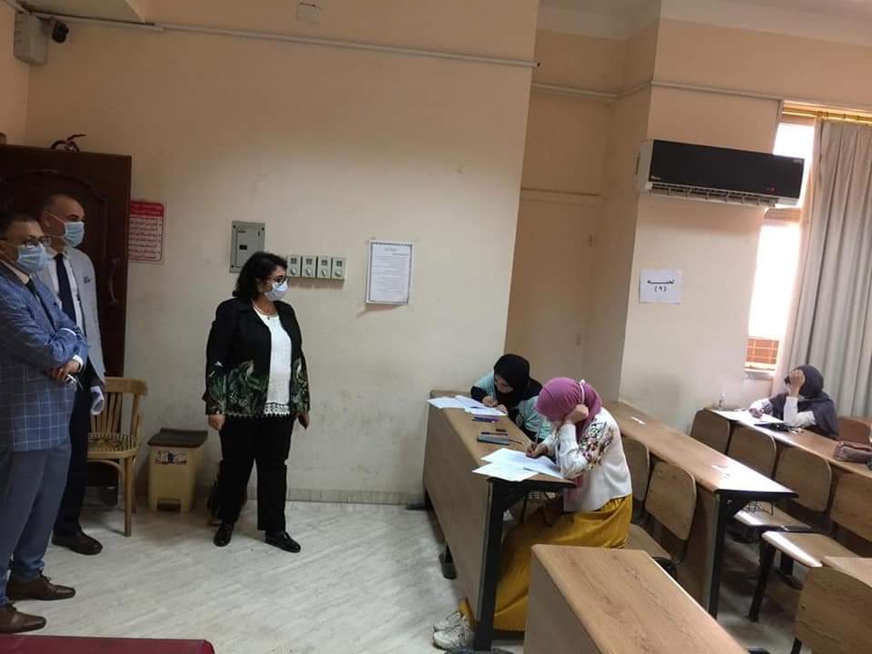 كما قامت الدكتورة نانسى أسعد نائب رئيس الجامعة لشئون التعليم والطلاب بجولة تفقدية للجان الإمتحانات بكليات الحقوق والهندسة والطب والتربية الرياضية للاطمئنان على الطلاب، وانتظامهم بلجان الامتحانات، وتوزيعهم على مسافات بينية والتأكد من توفير كافة سبل الحماية، وتواجد أعضاء هيئة التدريس والهيئة المعاونة والمراقبين، وفريق طبى جاهز على مدار الساعة فى حالة ظهور أى أعراض مرضية، مؤكدة على تذليل كافة العقبات وعدم وجود أى مشاكل تواجه الطلاب، كما تفقدت مداخل الكليات وبوابات التعقيم، وعدم دخول أى طالب بدون الكمامة ووسائل الحماية اللازمة.