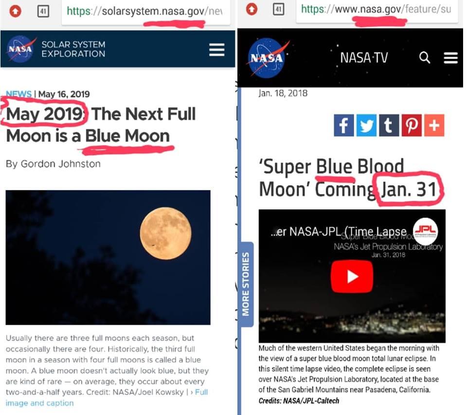 معنى ذلك انه لا مفهوم محدد للقمر الازرق و لا مرجعية ولا دلالة او غاية للظاهرة ونوضح ان هذا الخلط والغموض والتناقض في النشر حول مفهوم القمر الازرق ليس لدى وكالة ناسا فقط بل العديد من المراكز و المواقع الفلكية والعلمية حول العالم ونحن بهذا ليس لننتقد جهة معينة او مجلة مخصصة أو موقع اخباري بقدر ما نريد ان نوضح الحقائق و انه لا مرجعية تاريخية او دلالة علمية للظاهرة، لذلك في هذة المقالة أوضحنا العديد من المفاهيم المتناقضة للقمر الأزرق من منظور فلكي ولغوي وثقافي و هو ما يجعل الكثير بين الحين و الآخر مثل ناسا و غيرهم يعلنون عن القمر الأزرق.