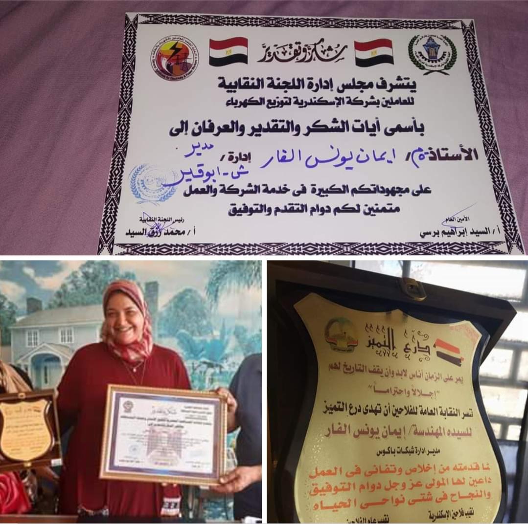 كرمت نقابة العاملين بشركة الاسكندرية لتوزيع الكهرباء برئاسة الاستاذ محمد رزق المهندسة ايمان يونس يونس الفار عن مشوار طويل من الإنجازات .