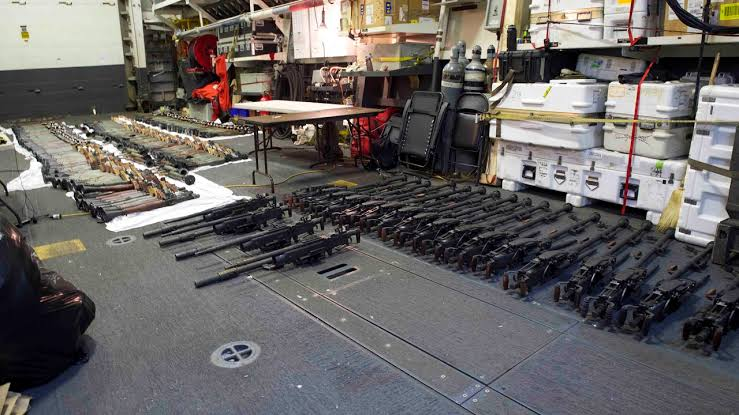 اعترضت القوات البحرية الأمريكية والفرنسية، الشهر الماضي، سفن شحن كانت تُهَرِّب آلاف الأسلحة من إيران متجهة إلى اليمن، وضبطت المصادرتان آلاف البنادق الهجومية والمدافع الرشاشة من الطراز الروسي، وعشرات الصواريخ المضادة للدبابات، وأكثر من نصف مليون طلقة من الذخيرة.