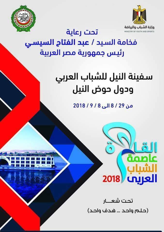 تطلق وزارة الشباب والرياضة برئاسة الدكتور أشرف صبحي فعاليات سفينة النيل للشباب العربي ودول حوض النيل تحت شعار (حلم واحد.. هدف واحد) في الفترة من 30 أغسطس الجاري حتى 8 سبتمبر المقبل تحت رعاية السيد الرئيس عبد الفتاح السيسي وفى إطار فعاليات القاهرة عاصمة الشباب العربي، بمشاركة 210 شاب وفتاة يمثلون 24 دولة عربية وافريقية، بالتعاون مع جامعة الدول العربية ووزارة الخارجية.