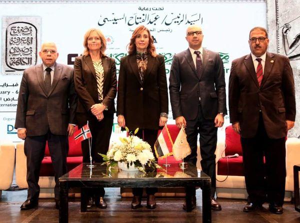 وقالت السفيرة هيلدا كليميتسدال، سفيرة المملكة النرويجية بالقاهرة: "إنه لمن دواعي سروري، أن أكون هنا اليوم"، وتقدمت بالشكر للدكتورة نيفين الكيلاني، وزيرة الثقافة، والدكتور أحمد بهي الدين، رئيس الهيئة المصرية العامة للكتاب، على اختيار النرويج ضيف شرف هذه الدورة.