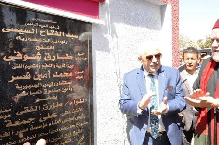 افتتح الدكتور طارق شوقي وزير التربية والتعليم والتعليم الفني واللواء محمد أمين نصر، مستشار رئيس الجمهورية وأمين صندوق "تحيا مصر"، اليوم، عددًا من المشروعات التعليمية التى تم تطويرها من قبل صندوق تحيا مصر داخل قرى محافظة سوهاج، بحضور اللواء طارق الفقي، محافظ سوهاج، واللواء محمود شعراوي وزير التنمية المحلية، والدكتور علي جمعة، عضو اللجنة التنفيذية للصندوق، وعدد من الفنانين والشخصيات العامة.