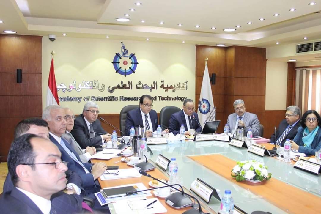 عقد مجلس أكاديمية البحث العلمى والتكنولوجيا اجتماعه الدوري أمس الثلاثاء برئاسة د. خالد عبد الغفار وزير التعليم العالى والبحث العلمى، وبحضور د. محمود صقر رئيس الأكاديمية، ود. ياسر رفعت نائب الوزير لشئون البحث العلمى، ود. أيمن عاشور نائب الوزير لشئون الجامعات، وأعضاء المجلس، وذلك بمقر أكاديمية البحث العلمى والتكنولوجيا.