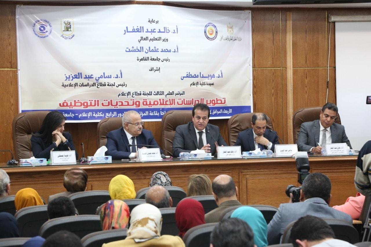 شهد د. خالد عبد الغفار وزير التعليم العالي والبحث العلمي اليوم الأربعاء فعاليات المؤتمر العلمي الثالث للجنة قطاع الدراسات الإعلامية بالمجلس الأعلى للجامعات تحت عنوان "تطوير الدراسات الإعلامية وتحديات التوظيف"، بحضور د. عثمان الخشت رئيس الجامعة، ود. محمد لطيف أمين المجلس الأعلى للجامعات، ود. سامى عبد العزيز رئيس لجنة قطاع الدراسات الإعلامية بالمجلس الأعلى للجامعات، ود. عادل عبد الغفار المستشار الإعلامى والمتحدث الرسمى للوزارة، ود. هويدا مصطفى عميد كلية الإعلام جامعة القاهرة، وذلك بكلية الإعلام بجامعة القاهرة.