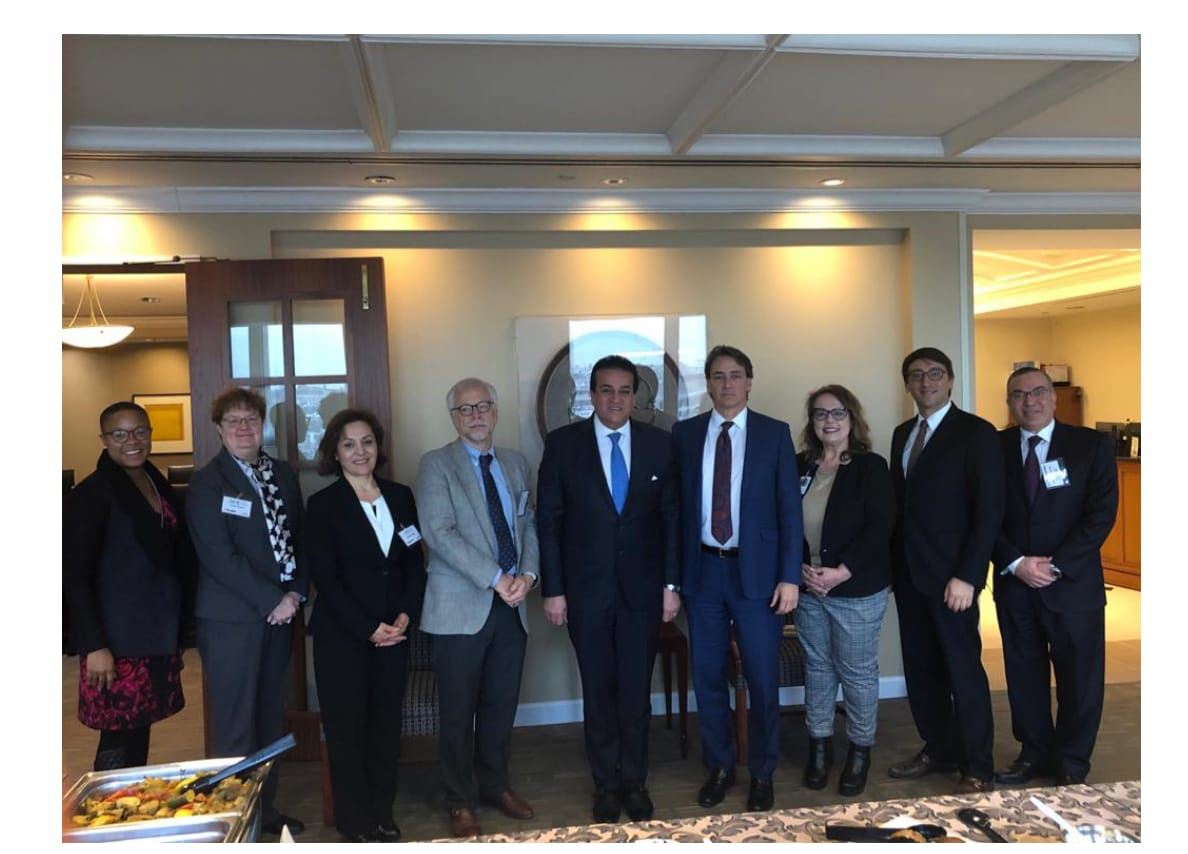 ومن جهة أخرى التقى الوزير بمقر السفارة المصرية بواشنطن، بما يزيد عن ثلاثين أستاذًا وباحثًا أمريكيًّا من أصل مصري بجامعات جورج واشنطن وجورج مايسون وميرلاند وجونز هوبكينز، وعدد من ممثلي البنك الدولي، وصندوق النقد الدولي، والمعاهد الوطنية للصحة، وهيئة الغذاء والدواء الأمريكية، والمبتعثين المصريين.