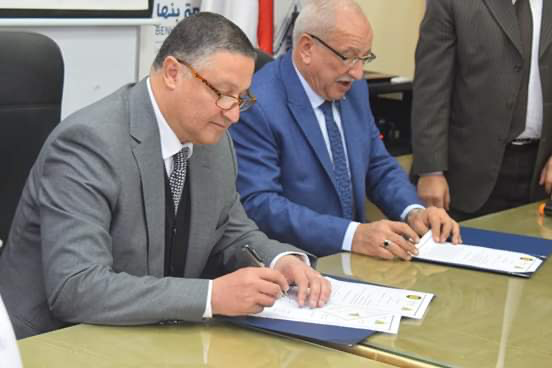 وقع بروتوكول التعاون د. جمال السعيد رئيس جامعة بنها، ود.طايع عبد اللطيف مستشار الوزير للأنشطة الطلابية، والمشرف العام على معهد إعداد القادة بحلوان.