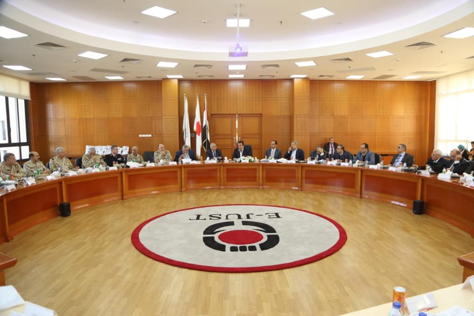 في بداية الاجتماع أشاد د.أحمد الجوهري رئيس الجامعة المصرية اليابانية بجهود أعضاء اللجنة في تنفيذ المشروعات التنموية في مجال التعليم العالي والبحث العلمي.