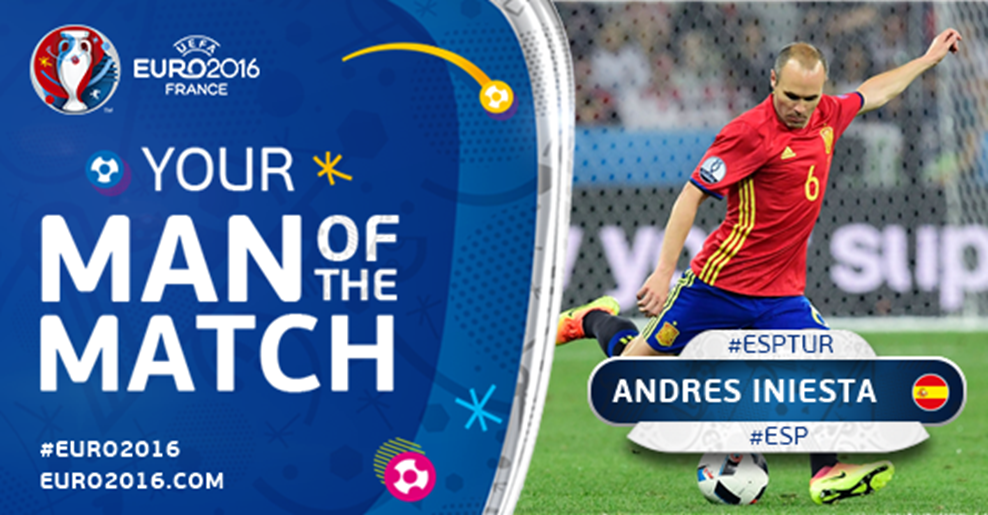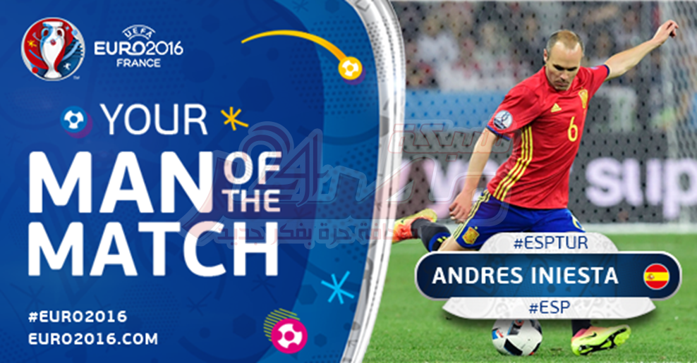 يورو 2016: اللاعب الاسباني انييستا هو رجل مباراة اسبانيا وتركيا