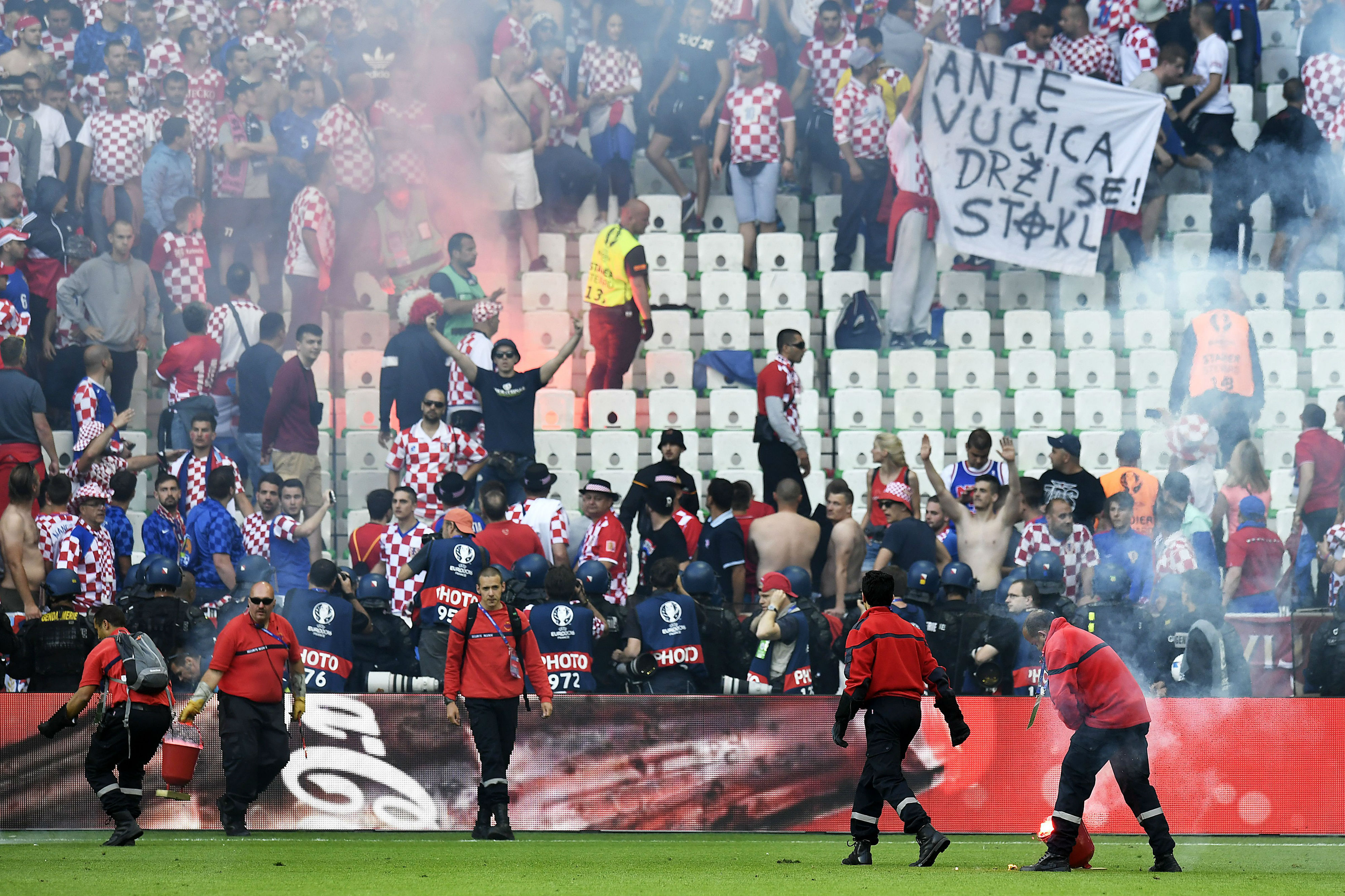 اعلن الاتحاد الأوروبي لكرة القدم "يويفا" عن فتح تحقيق مع كرواتيا جراء إلقاء الجماهير للألعاب النارية فى المباراة التى جمعتهم بالتشيك وانتهت بالتعادل 2-2. وكان الحكم الانكليزي مارك كلاتنبيرغ قد أوقف المباراة أربع دقائق بعد إلقاء الجماهير الكرواتية الألعاب النارية داخل الملعب وكانت كرواتيا متقدمة آنذاك بهدفين مقابل هدف. وهذه هي الحالة الثانية التي تسجل بحق جماهير كرواتيا حيث كانت هناك واقعة أخرى لإشعال الألعاب النارية فى المدرجات خلال المباراة الأولى المنتهية بفوزهم 1-0 على تركيا.