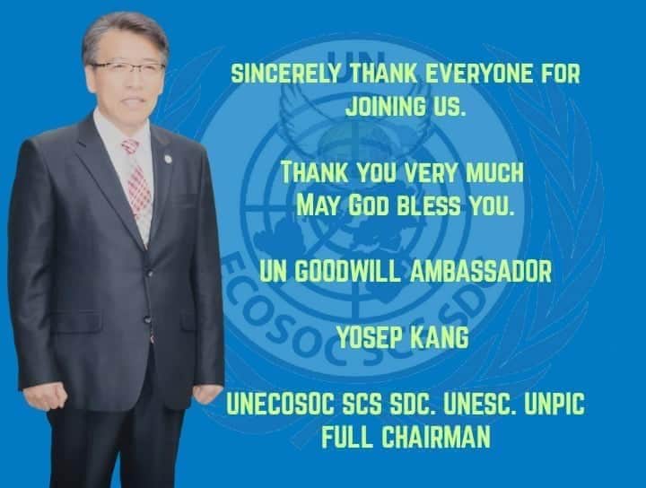 اكد AMB.H.R.H.PRINCE.DR. YOSEP KANG UNECOSOC SCS SDC.UNESC. الرئيس الكامل للأمم المتحدة سفير النوايا الحسنة.د.يوسيف كانج